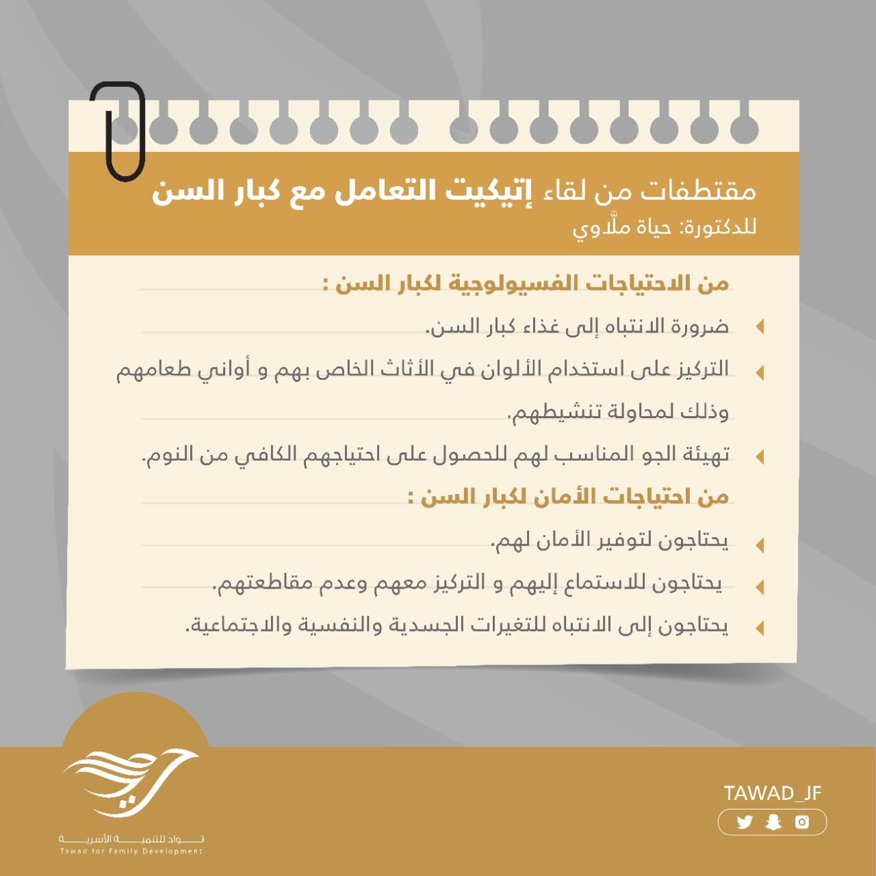 برامجنا مقتطفات من لقاء ( إتيكيت التعامل مع كبار السن ) للدكتورة: حياة ملَّاوي إقرأ المزيد 23 يونيو، 2021 6:59 م