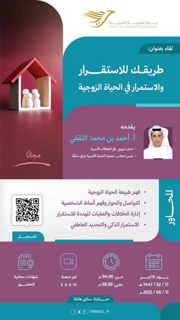 ولقاء: (طريقك للاستقرار والاستمرار في الحياة الزوجية)👩❤️👨