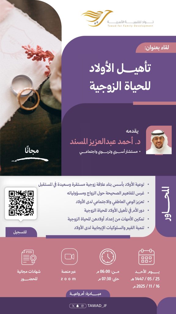 - توعية الأولاد بأسس بناء علاقة زوجية مستقرة وسعيدة في المستقبل.